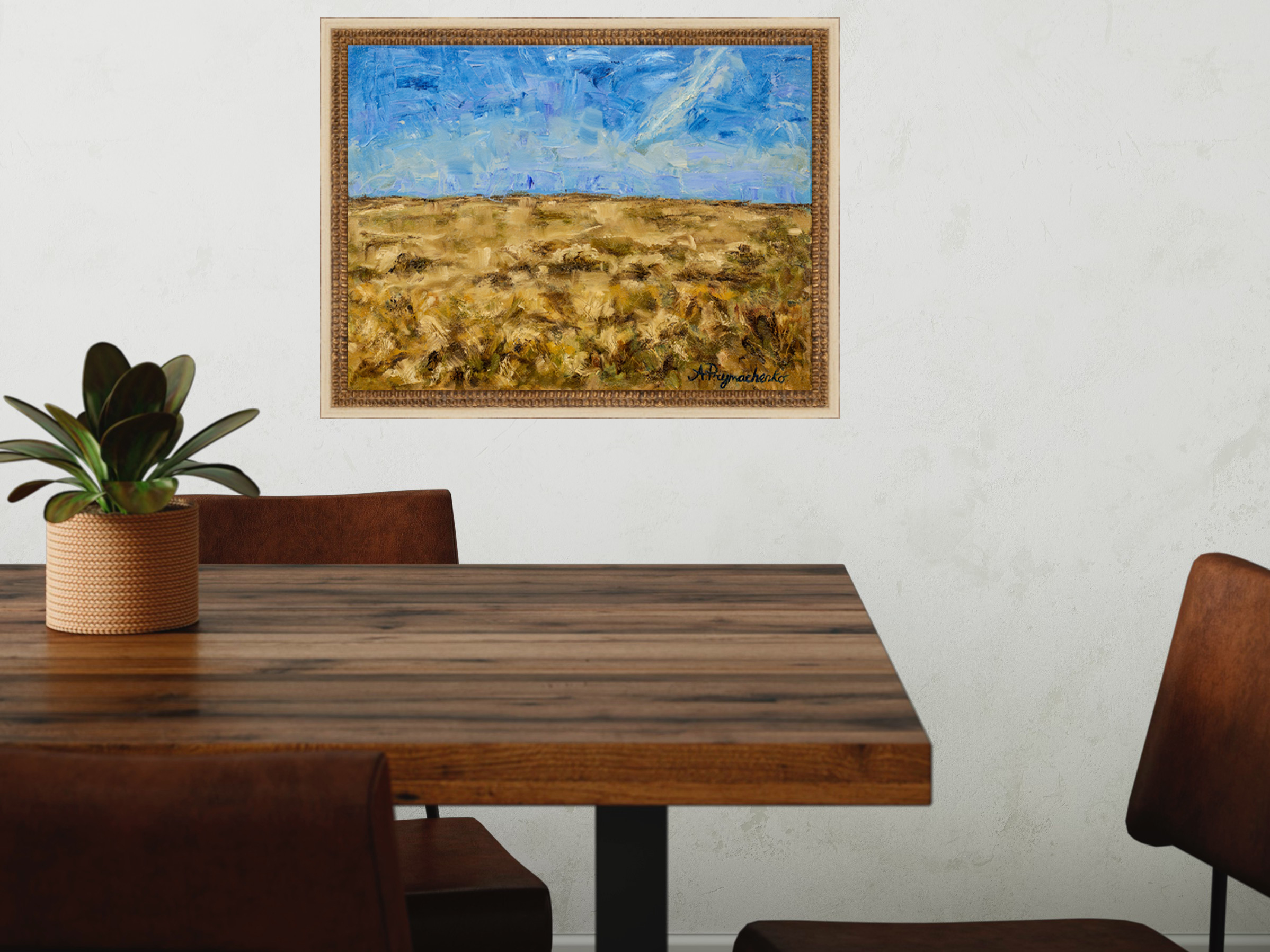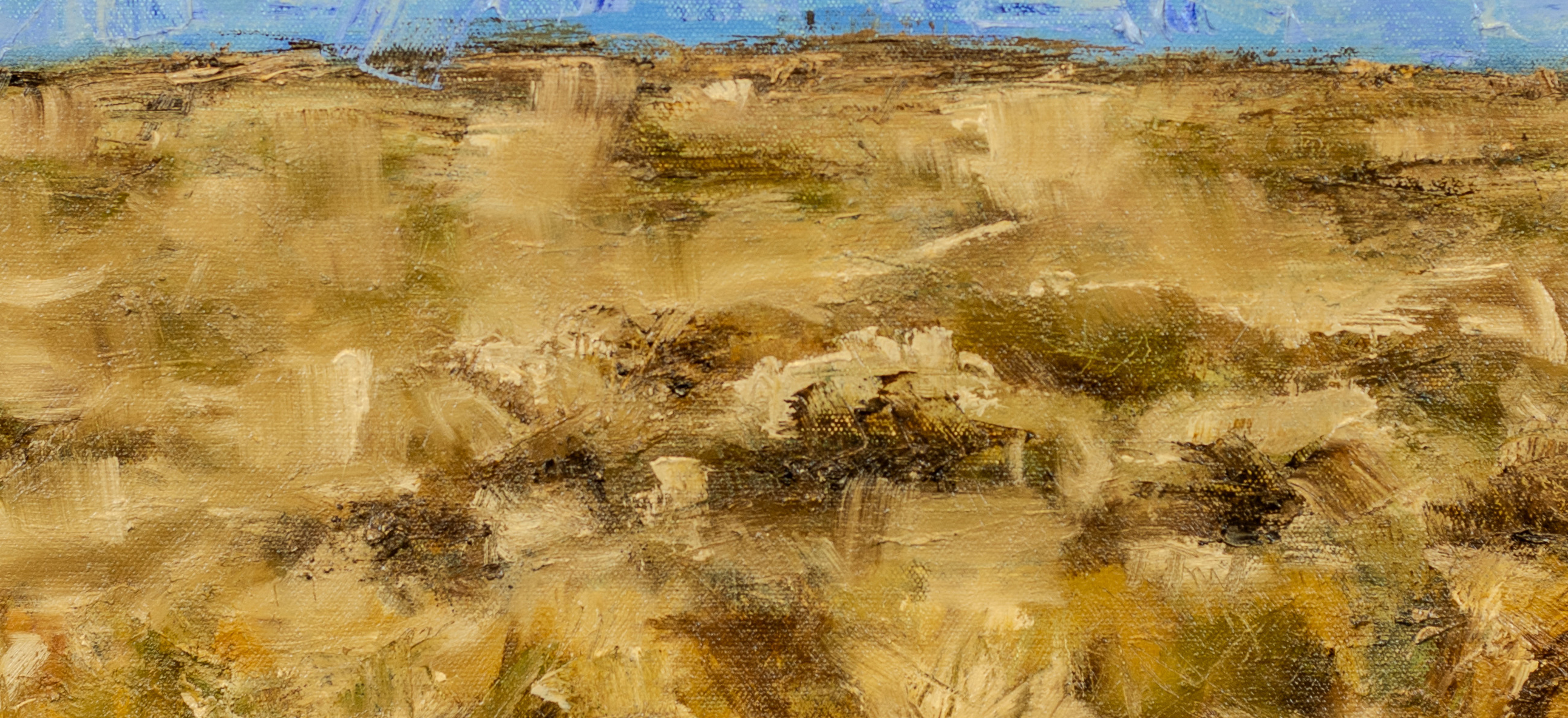 This painting depicts the Texas Panhandle plain. Recently I've been very interested in depicting grass due to it's ability to take up huge amount of visual space and continuation, like a blanket of snow or sea