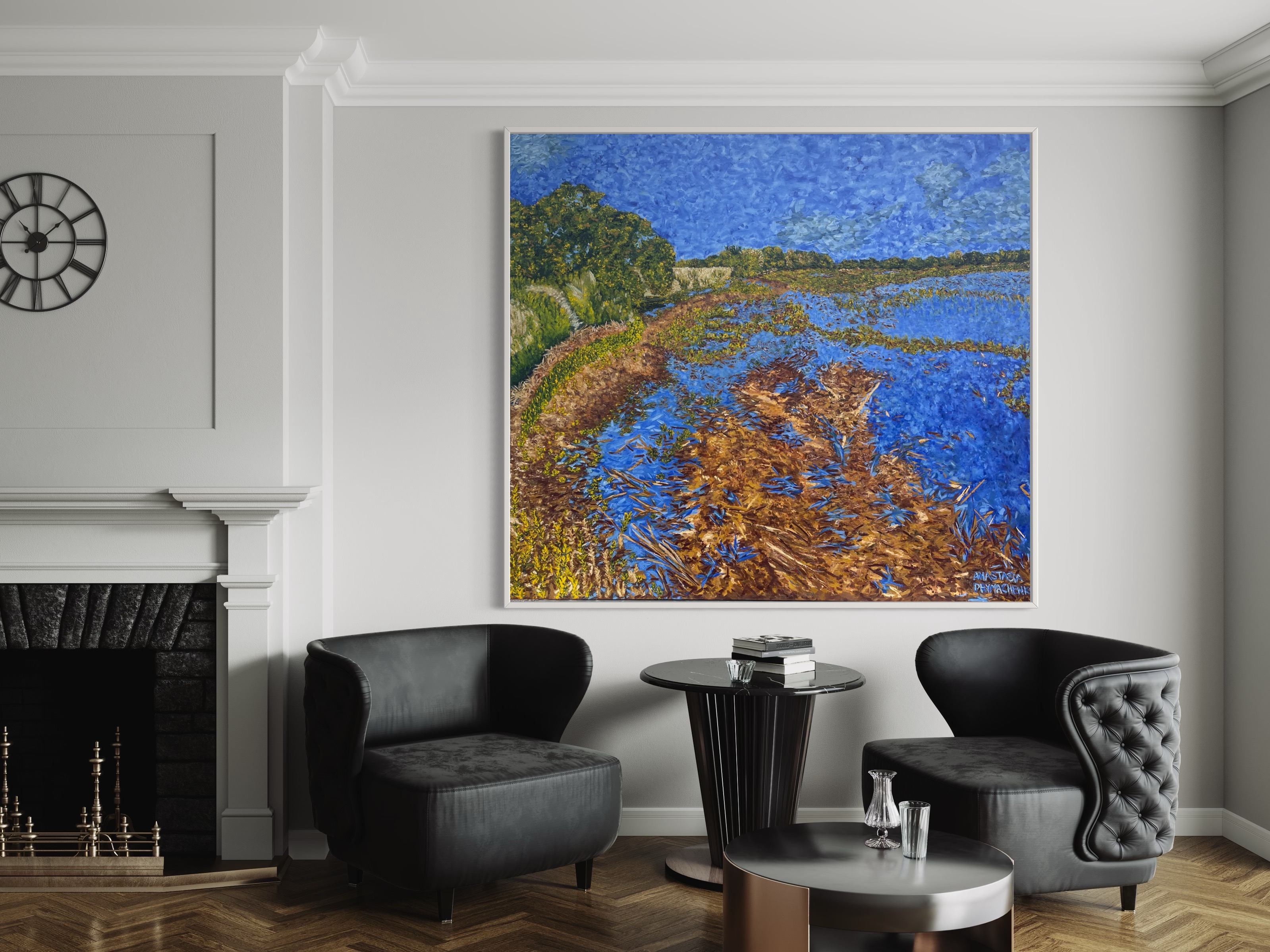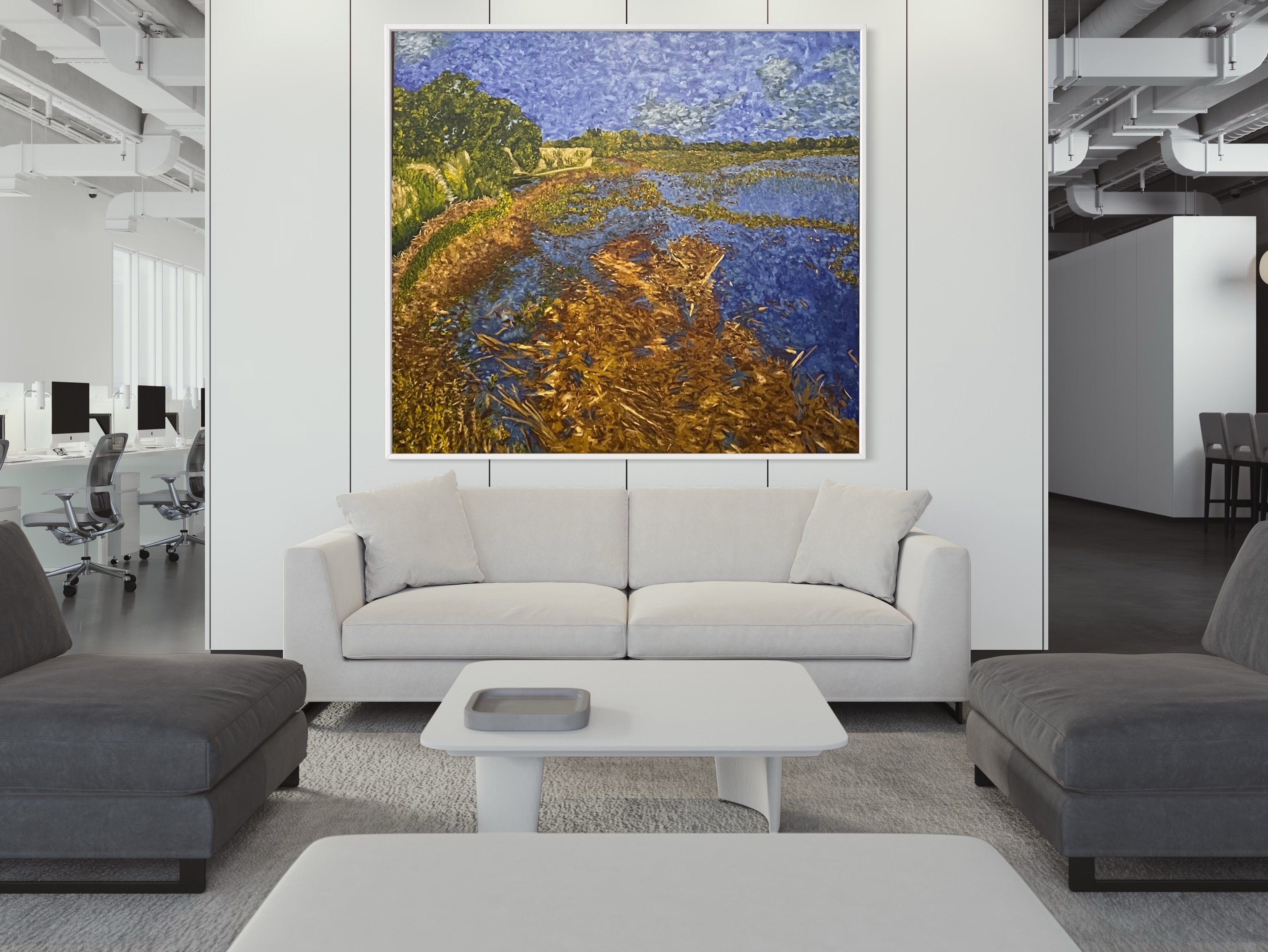 This scene is inspired by the I-20 Wildlife Preserve in Midland, Texas. This painting was commissioned by the Fafa Gallery on behalf of Midland Charms.